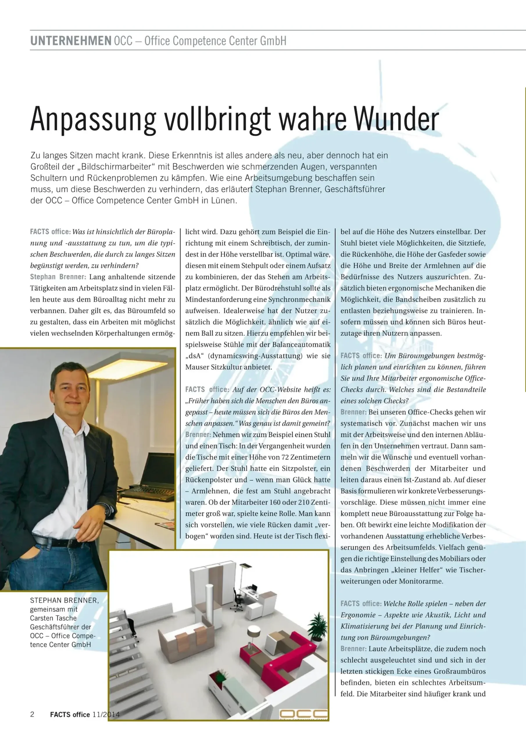 Interview zum Thema „Ergonomie und Büroplanung“ in der FACTS office, Ausgabe 11 aus dem Jahr 2014 als PDF-Datei zum Download.
